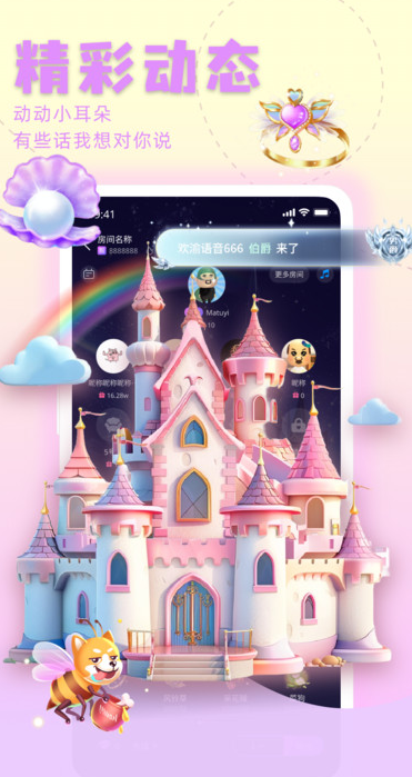 3、主题社交房间满足多元需求,喜欢唱歌可进入K歌房一展歌喉,想轻松闲聊也有专属圈子。