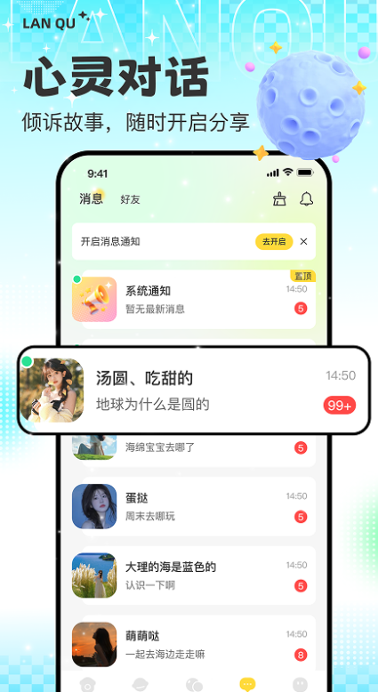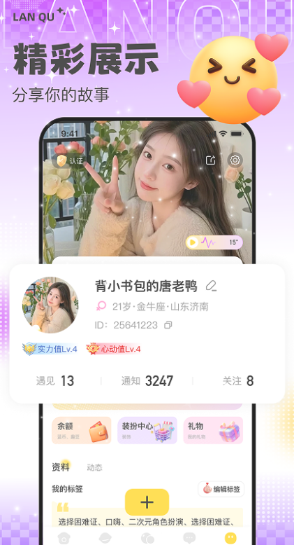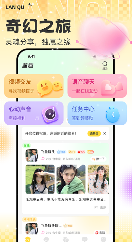 蓝趣交友app是一款属于你的心灵碰撞交友软件,每一次的碰撞都会为你带来更多惊喜,在这支持视频聊天,语音聊天,不同的用户可以根据不同的场景切换不同的模式在线聊,聊天之前可以一键查看他人信息资料,也可以及时进入他人的动态,可以从日常动态中更好的去了解他人,也可以帮助你快速筛选感兴趣的异性,助你交友趣味性不断。