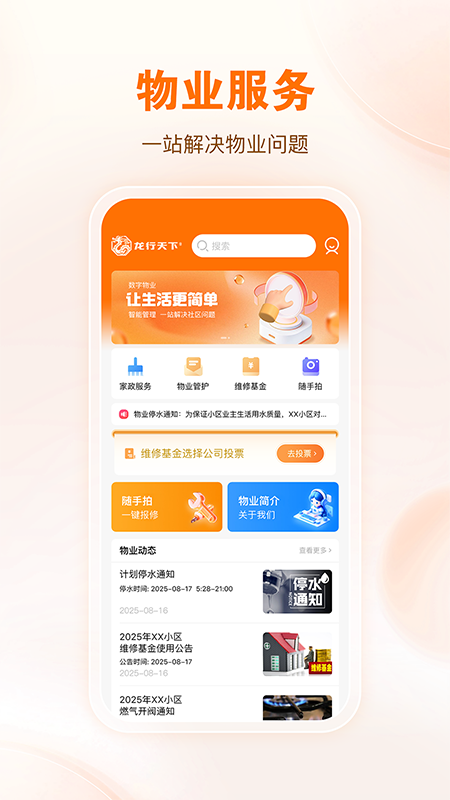 2、实现报修、投诉、缴费、投票等物业服务的全流程线上化,构建业主、物业与社区之间的高效沟通桥梁。