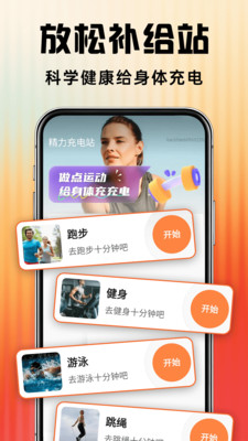 2、提供运动放松功能,选择不同类型的运动就会自动开始计时;