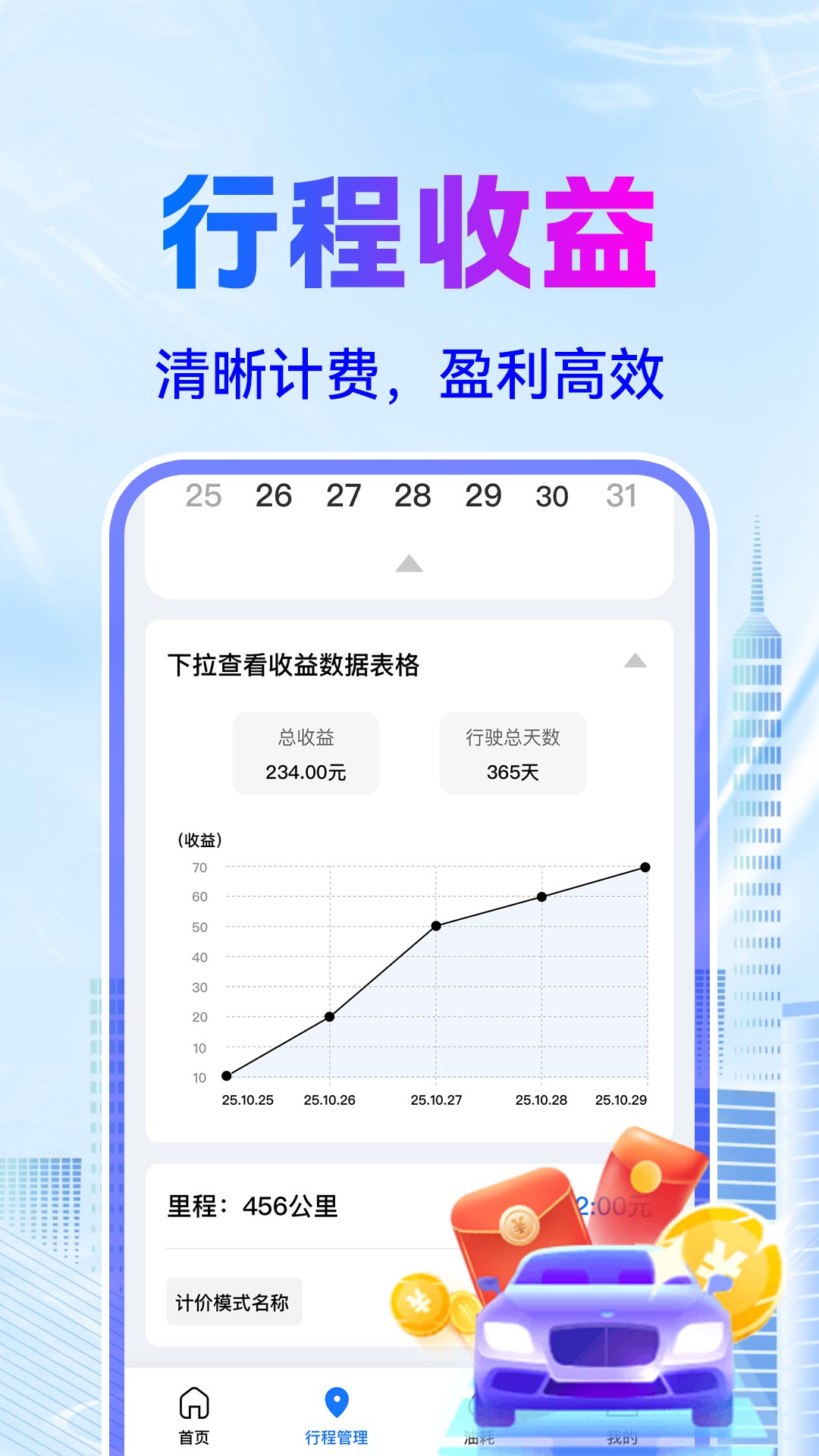 3、收益管理中心,详细记录每单收入与支出,提供日/周/月财务报表,助力财务规划。