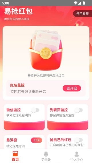 3、进入个人中心,还能查看详细的使用教程,让新手用户也能迅速掌握抢红包的技巧。