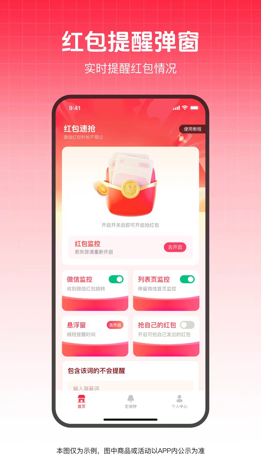 2、智能提醒,多种提醒方式任你选择,声音、震动或两者结合,确保你不会错过任何一个红包。