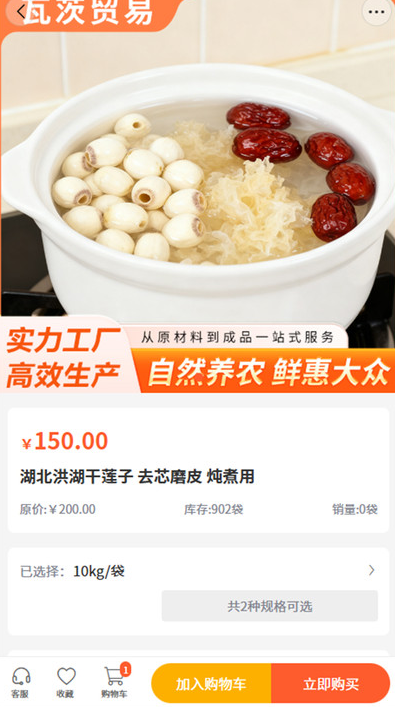 4、支持把商品加入购物车,也支持一键快速在线购买交易。
