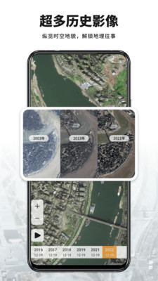 1、独特历史影像回溯功能,同一地点不同年代画面对比,清晰展现城市变迁与自然风貌的时光印记。