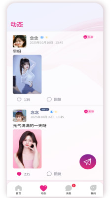 1、动态点赞评论一键操作,看到心仪内容随手互动,从点赞开始打破尴尬,开启轻松社交第一步。
