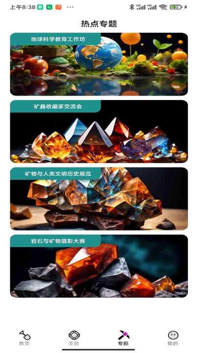 4、点击【专题】进入,各种矿物相关的专题活动不断更新。