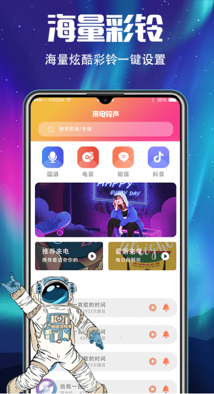 1、最新铃声排行榜则第一时间同步新增内容,涵盖刚发布的歌曲片段、影视原声与创意音效。