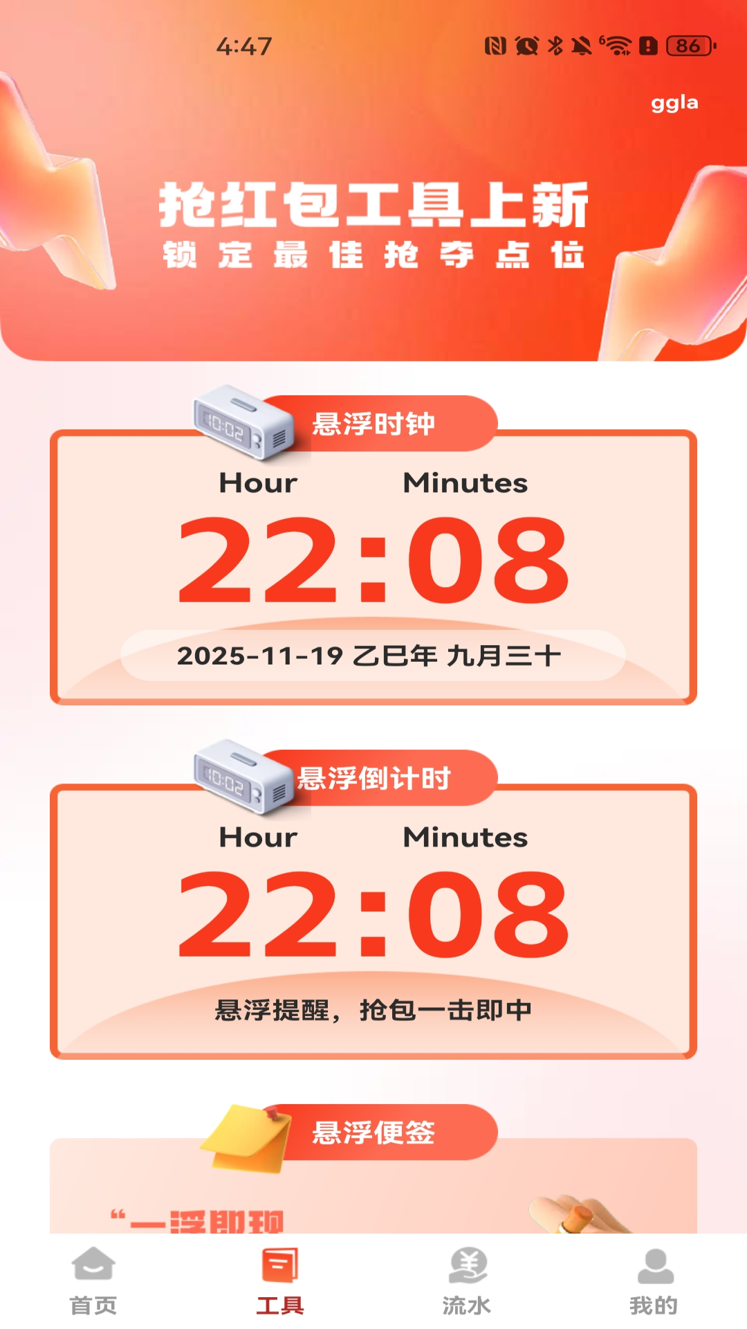 3、悬浮计时精准捕捉红包倒计时,悬浮时钟则实时显示当前时间,让你对时间了如指掌,抢红包快人一步。