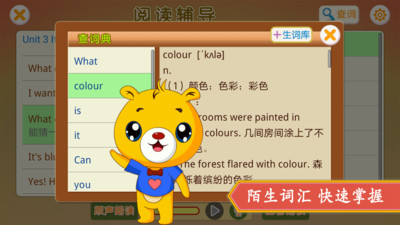 3、包含单词、阅读、课本点读、重点、复习、测验等功能,全面满足孩子们的学习需要;