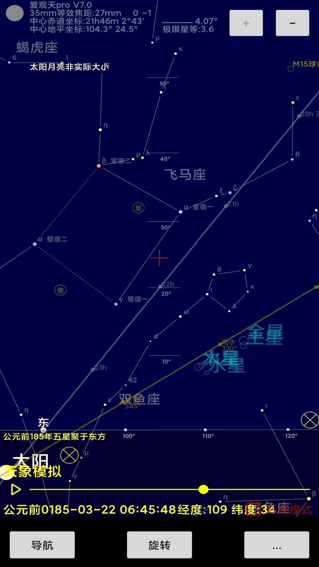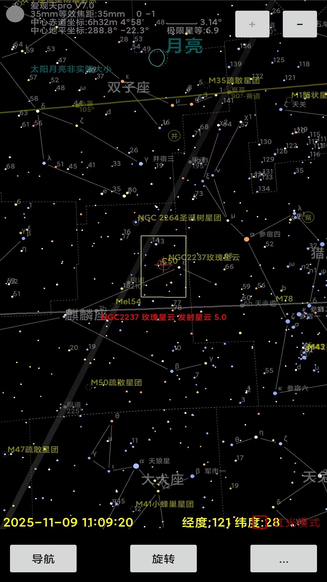 2、集成包含数十亿颗恒星、星云、星团及星系的数据库,识别后能实时在星图上高亮显示当前视场及中心目标。
