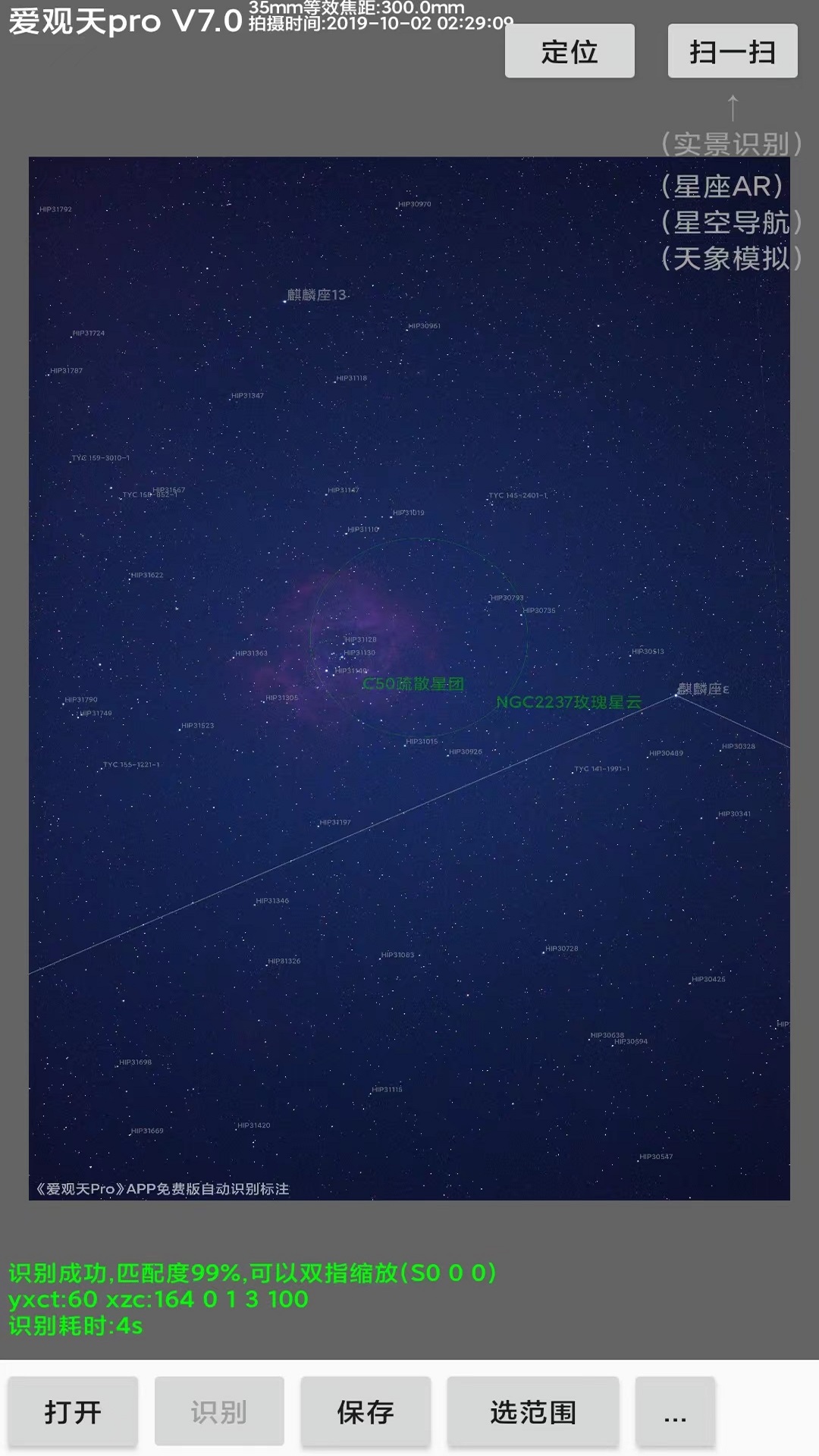 1、支持导入手机拍摄或传输至手机的长焦星空照片,自动识别视场并在地图定位。