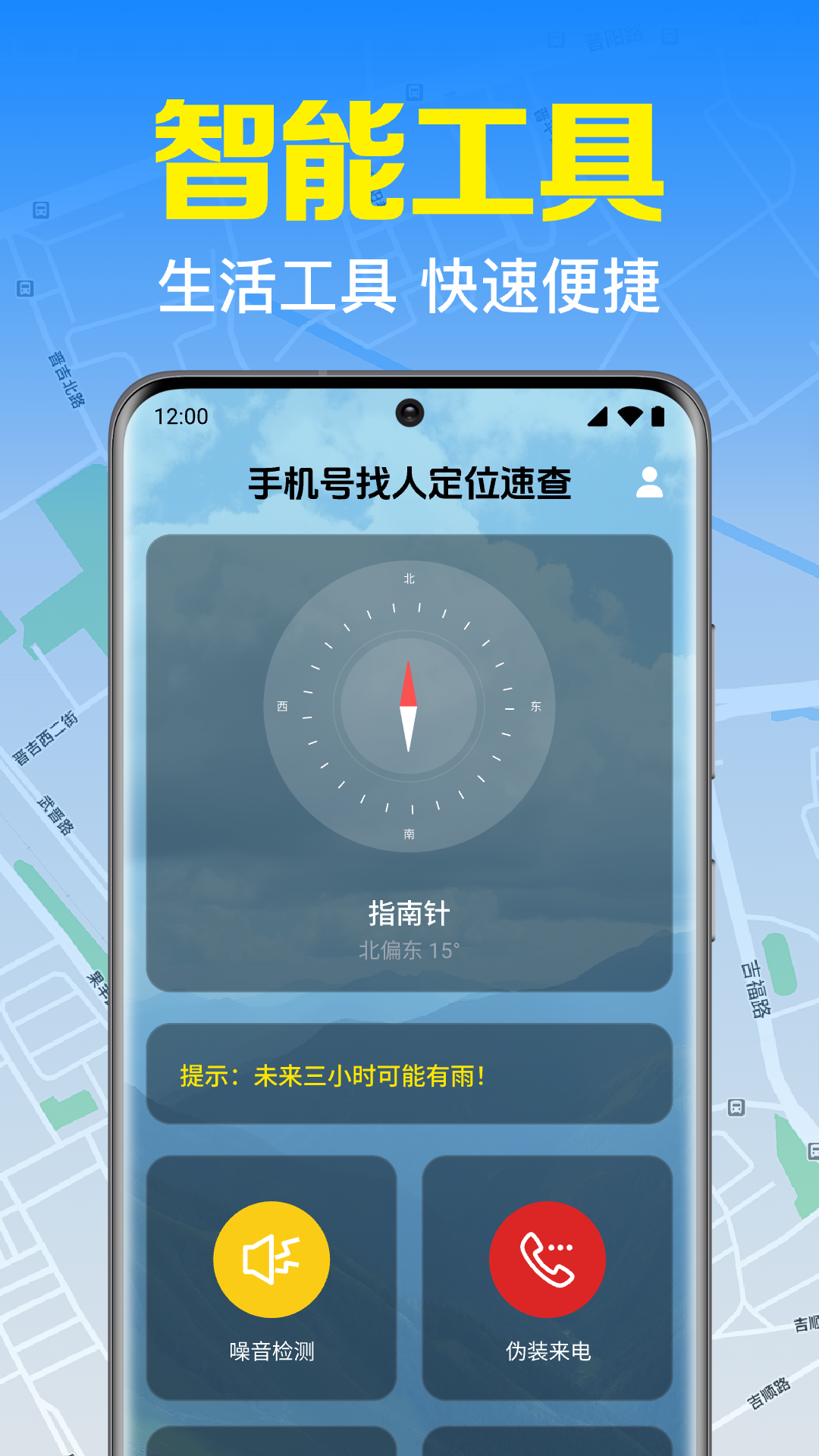 1、下载手机号找人定位速查app安装好,手机支持实时定位和历史轨迹查询。