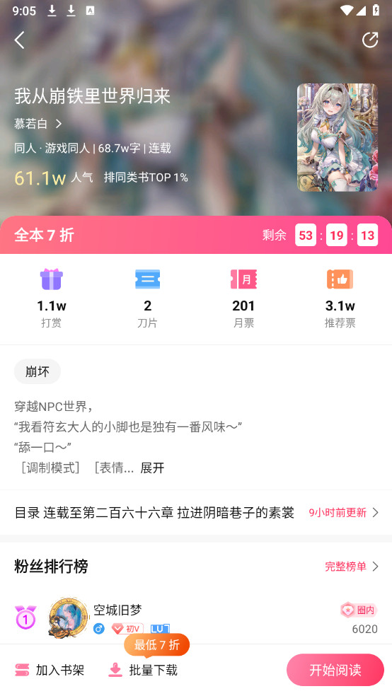 3、app提供了各种榜单可查看,各种发现好作品一键阅读。