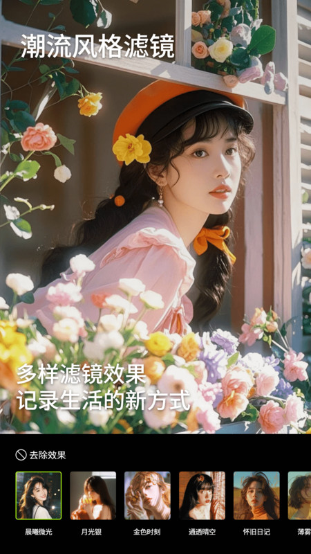 2、内置丰富多样的专业滤镜库,从复古胶片质感的前卫艺术色调,轻轻一点即可为作品赋予独特的视觉魅力。