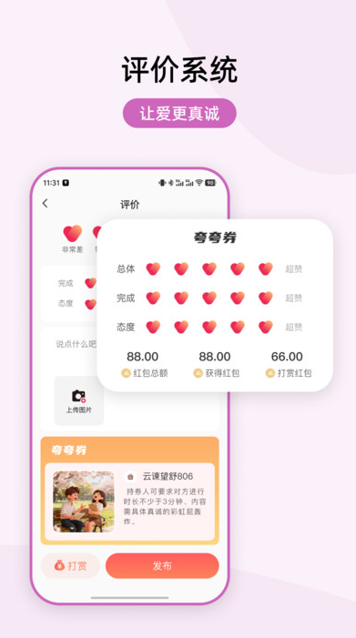 1、提供设计情侣评分机制,让券接收方通过评分表达对券的满意度。