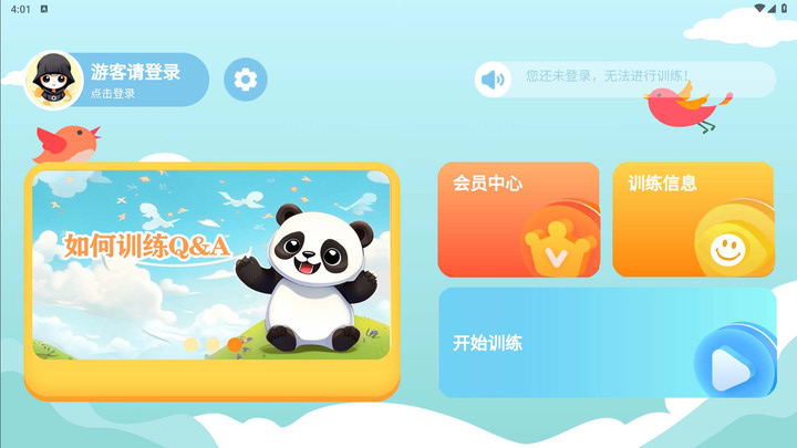 3、也可选择游客登录方式,进入主页,随时开启视力训练挑战。