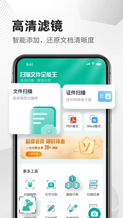 1、整合文件扫描、文字识别、证件处理、格式转换等多种实用功能,覆盖办公与生活常见需求。