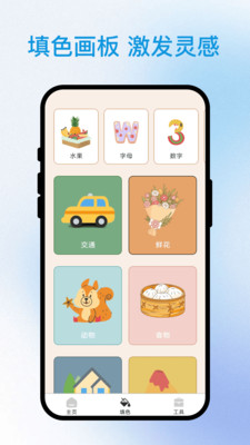 1、进入app就可以使用不同的绘画创作功能,有画板和填色等功能;