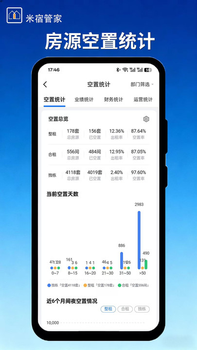 3、数据看板实时展示整体及单个项目的出租率、空置率等关键经营指标。