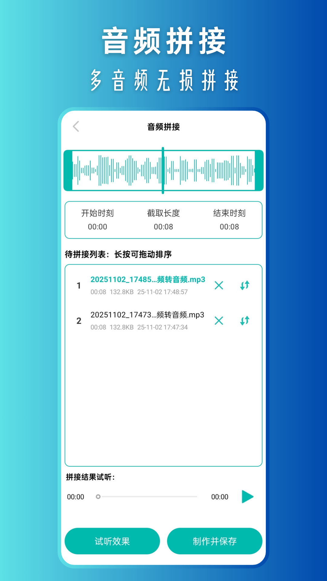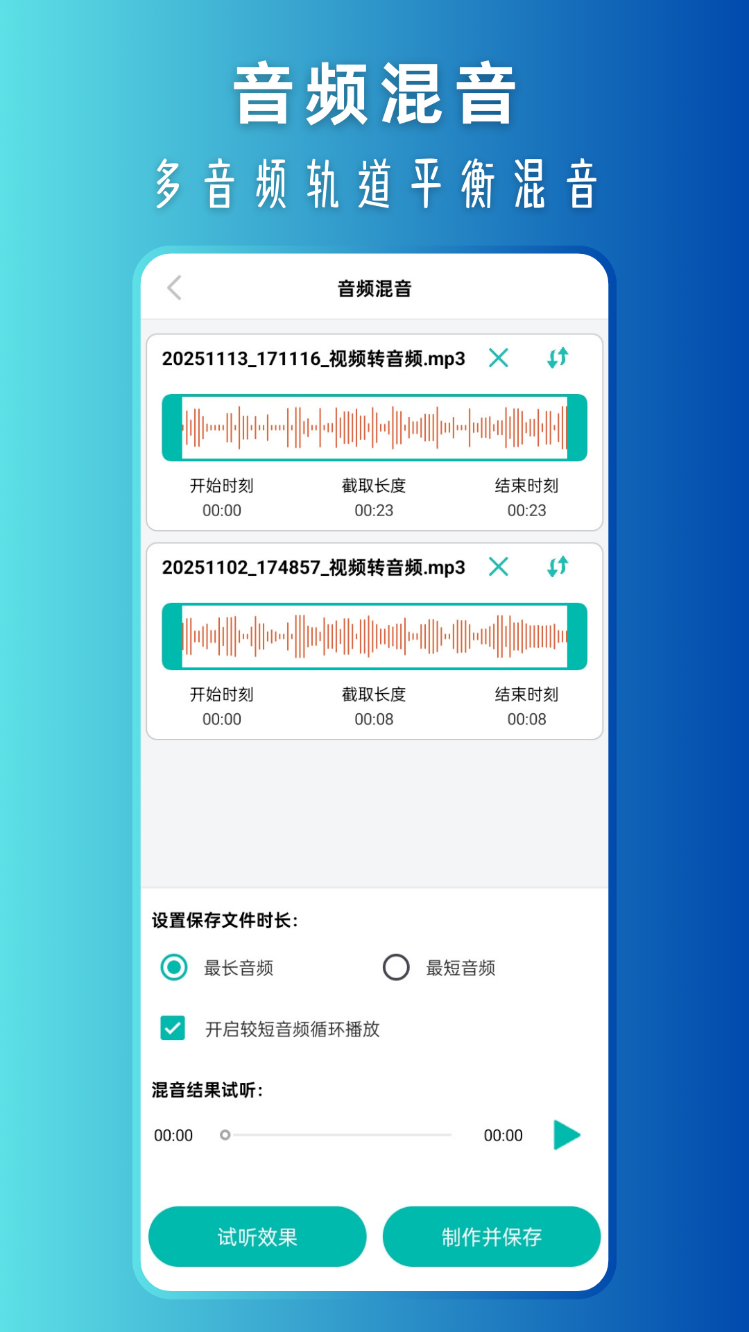 视频转音频器app语音转文字服务可在提取音频同时生成高精度字幕稿,系统支持中文英文混合识别并自动添加时间码,为内容创作者节省听打环节的大量时间,特效变声面板提供萝莉大叔空灵惊悚等十余种实时滤镜,用户可在导出前即时预览并叠加效果,让普通录音秒变剧情旁白,增加短视频趣味与互动性,配合剪辑功能可快速生成专属倒计时片头,一站式解决基础素材需求。