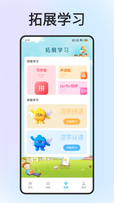 拼音拼读点读通app是专为儿童打造的拼音启蒙学习软件,能够通过图片+发音的方式进行教学,让孩子轻松的掌握拼音。包含了很多的拼音基础知识,还有丰富的视频教学课程供大家观看学习。平台能够将拼音知识通过卡通图案的形式展现出来,点击图标就能发音,给孩子们带来更有趣的学习体验,还有很多拓展学习内容供大家学习,培养孩子的语感。
