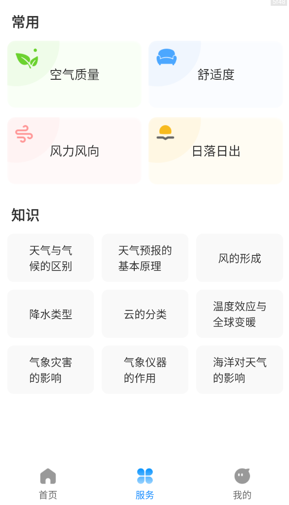4、app还提供了更多常用服务,还有更多天气相关知识百科。