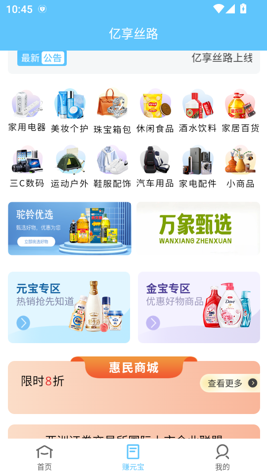 亿享丝路APP是一款购物也能赚钱的新型电商平台,创新性地将购物消费与趣味任务相结合,提供涵盖家居、数码、服饰等多类别的商品,满足日常购物需求。App的核心特色在于丰富的任务系统,用户通过签到、浏览、分享等简单行为即可赚取元宝奖励,并能直接兑换现金红包或实物商品。这种模式不仅提升了购物的趣味性,更让用户的每一次参与都产生额外价值,实现消费与收益的双重乐趣。