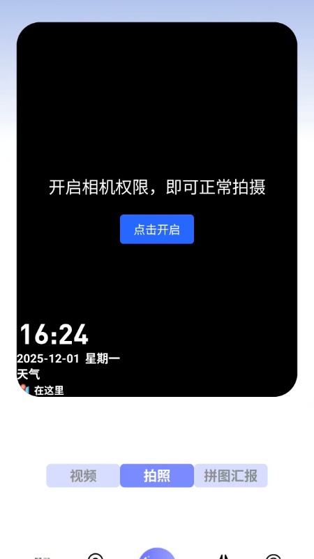 3、点击下方的拍照选项,提供相机权限即可进行拍照打卡。