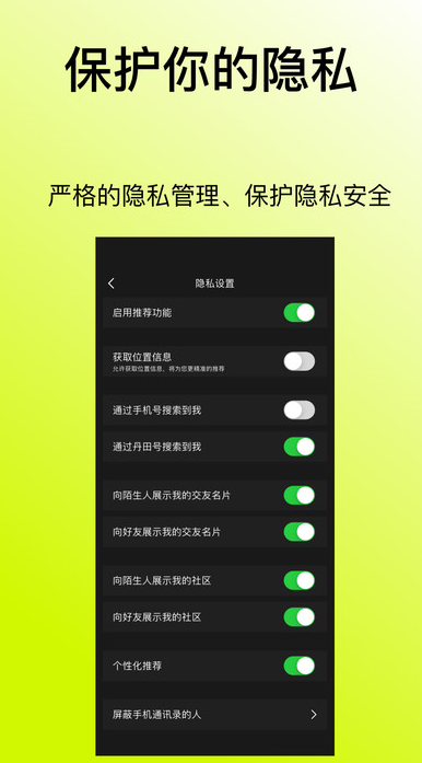 丹田app是新一代年轻人必备的交友神器,在这任你随时开启你的爱情之旅,在这任你及时筛选感兴趣的异性,在这你还可以随时分享你的个人生活动态,无论是交友还是生活都是很不错的选择,交友社区也将会随时为你敞开,你想加入就可以加入,在线聊天也不需要有如何的负担,各种热门话题也是可以积极的在线参与,增加交友乐趣。