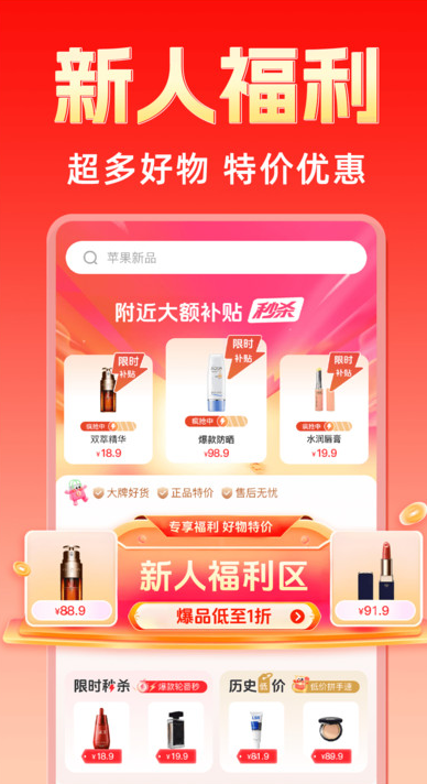 购物特价淘app是一款可以让你天天享受特价购物软件,这里的特价专区每天上线100款新商品,用户可以第一时间进入专区进行抢购,也可以及时查看商品的原价和特价,这样对比就可以让你省的一目了然,再也不需要担忧购买商品价格太贵了,好的商品质量有保障,这里的客服也将会随时在线,可以确保你的购买交易安全无忧。