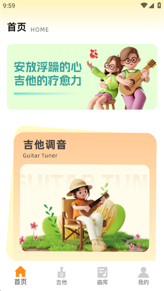 1、打开app就可以看到吉他调音功能,让大家更好的校准音色;
