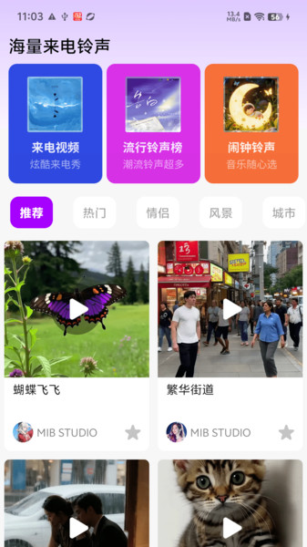 来电铃声视频美app是一款手机来电铃声软件,用户在线可以进行个性化定制编辑,操作简洁不复杂,同时可以同步在线预览效果,拥有丰富海量的视频模板,提供了各种铃声库,将网络上各种热门歌曲全部合集到一起,用户可以轻松制作设定,告别枯燥单一的铃声,帮您开启元气满满的每一天,线上的素材库会定期更新,用户可以将喜欢的进行收藏!