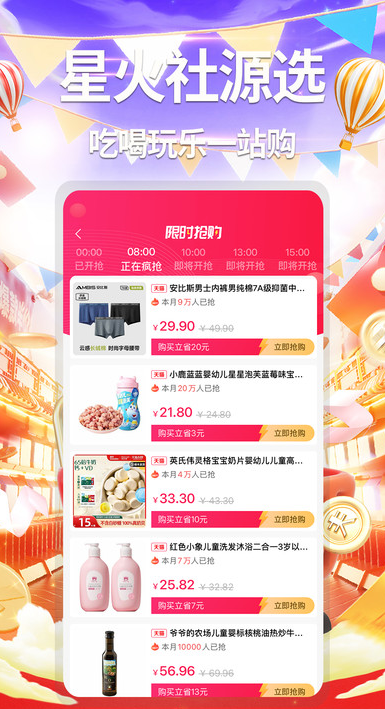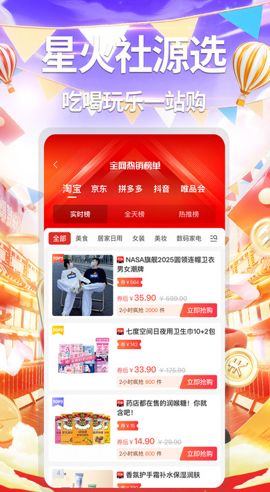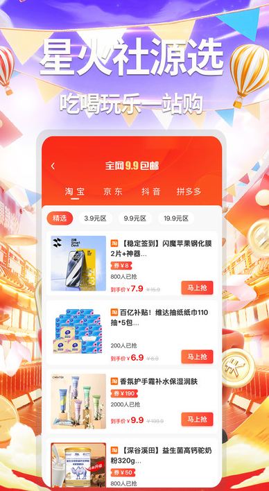 星火社源选app是一款让你吃喝玩乐都可以轻松省钱购物的软件,这里的商品汇集了各大平台上的优惠券,用户可以更轻松更快速领取想要的优惠券,优惠券下单的时候就可以自动为你省,省钱的同时你也可以获得平台商品返利金额,热卖商品还可以直接为你推荐,用户无需搜索即可快速抢购下单,让省的明白,用的放心,吃的健康。