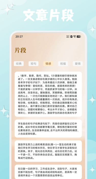 3、在片段专区,用户也可以收藏更多经典的语句。