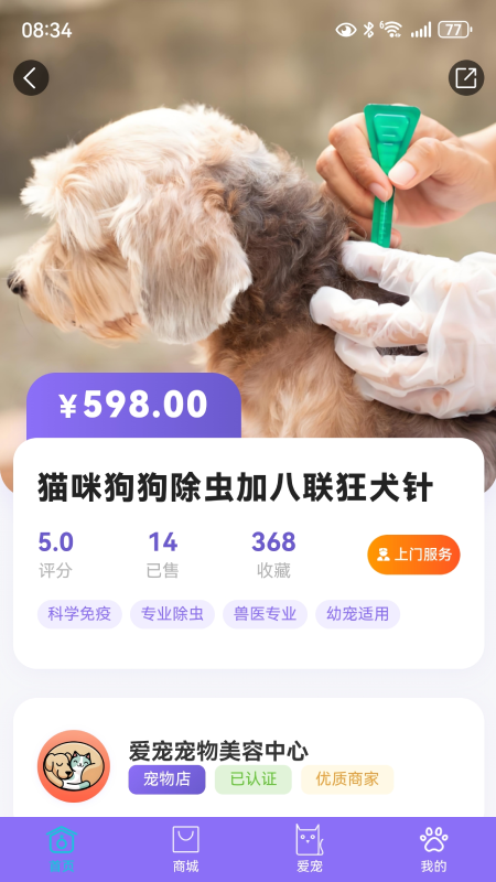 3、App聚合附近宠物医院美容店寄养园,可实时查看门店营业时间价目表与空闲时段,填写宠物信息后一键预约,到店扫码即可签到,省去电话排队等繁琐环节。