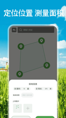 3、智能测亩功能更懂农业,支持不规则地块测量,自动修正误差,亩数、平方米等单位一键切换,数据清晰。