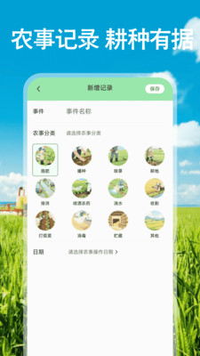 2、支持添加农事记录,记录的各项事务都会显示在这里;