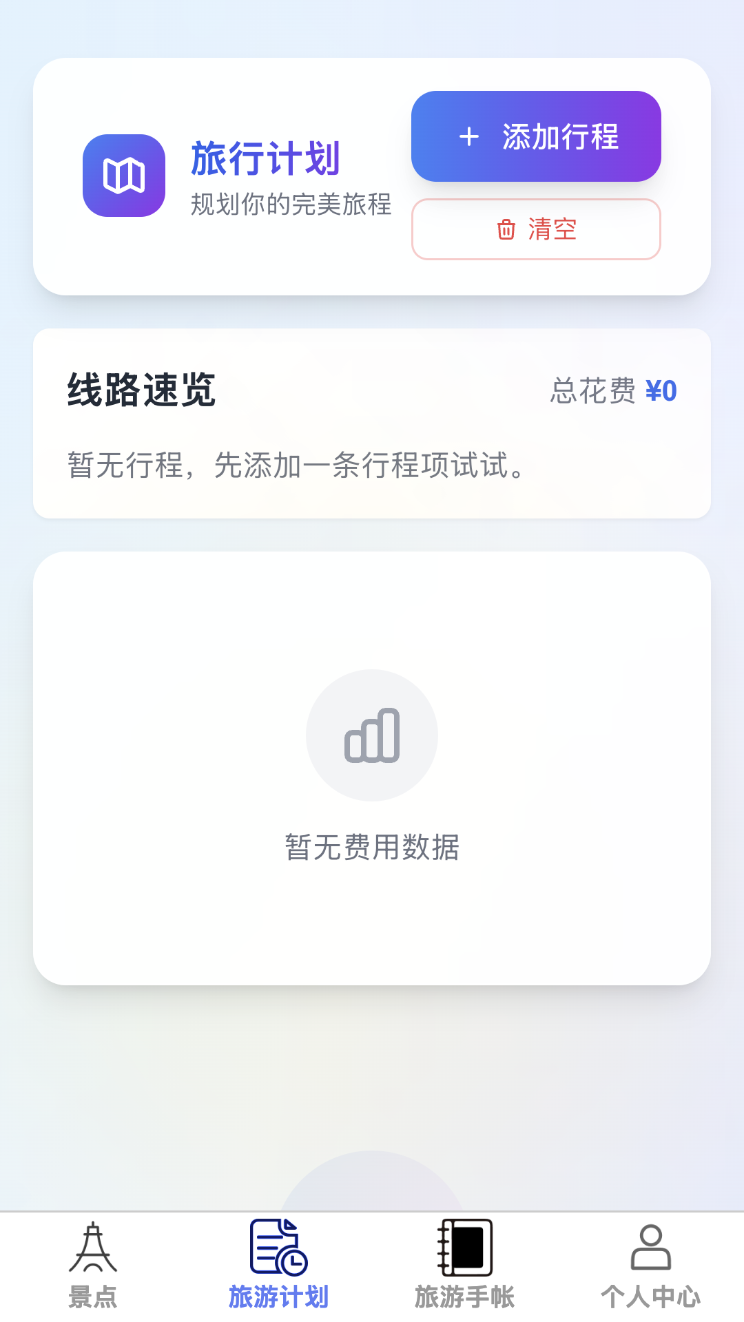 3、大家可以在这里添加自己的旅游行程和对应的费用方便以后查看。