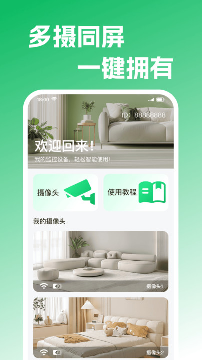 2、进入首页可以看到丰富的功能,实时添加设备进行监控安防管理。