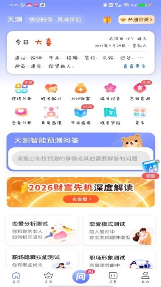天测APP是一款基于专业心理学模型构建的在线预测与自我认知平台。app并非提供宿命论式的占卜,而是通过科学的心理测评与智能分析,为你提供深度的人格解析、职业适配建议、情感沟通指南及发展风险机遇提示。在无社交压力的环境中,帮助你更清晰地认识自我,发掘潜在特质,为人生的重要决策提供一份专业的参考。