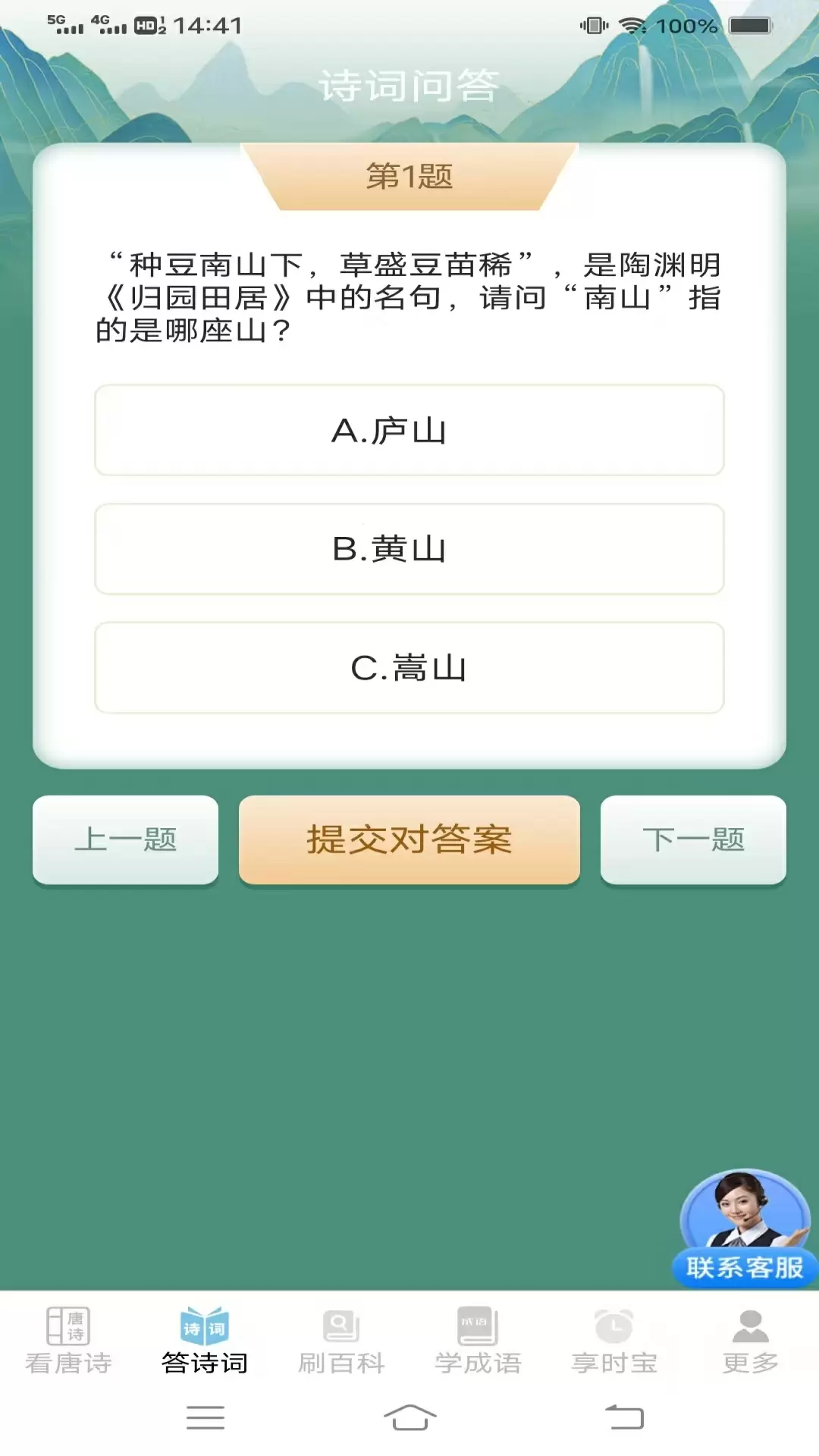 2、提供了专门的诗词问答功能,检验你的学习情况;