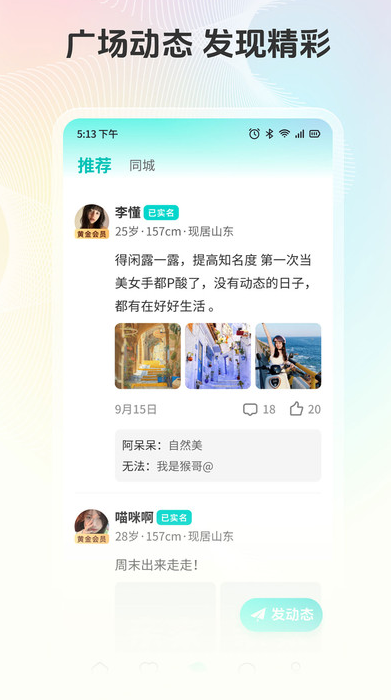 4、用户可以点击喜欢的动态,一键在线点击动态即可在线评论。