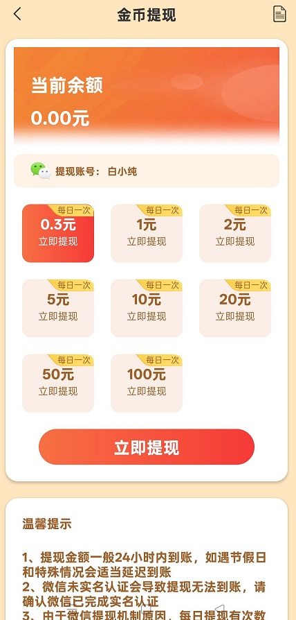 3、所有奖励可通过任务中心实时查询明细,积累到一定额度即可提现至微信。