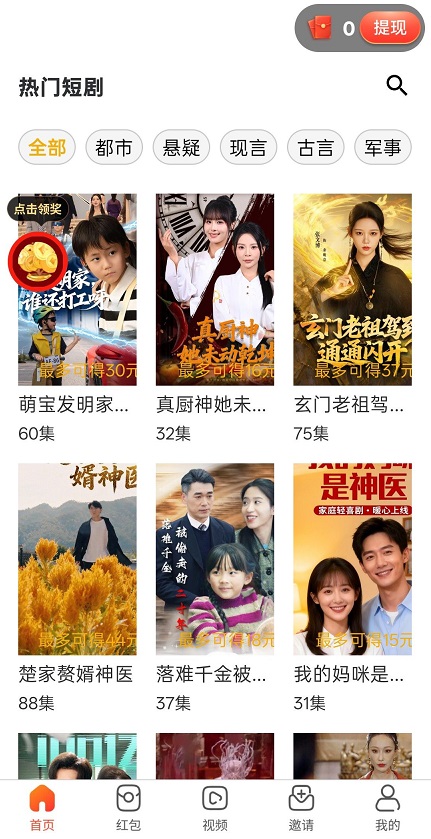 2、创新引入任务奖励机制,观看指定短剧或完成互动即可获得金币或现金红包。