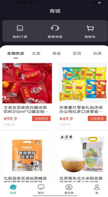 3、在首页上用户可以挑选喜欢的商品,并且点击立即购买。
