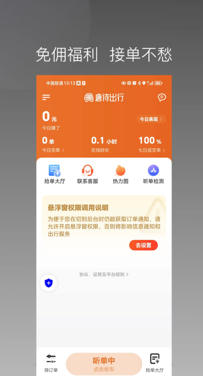 3、接单大厅同步全天候开放,无时段限制、无地域壁垒,只要司机处于上线状态,即可接入平台订单池。