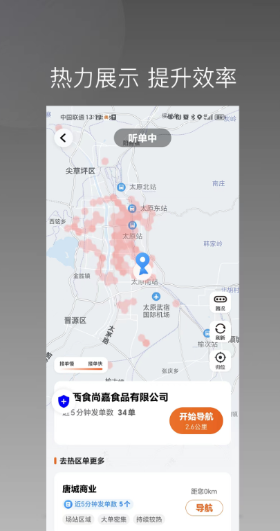 2、平台还通过热力图实时展示区域订单密度,红色高需求区域直观可见。