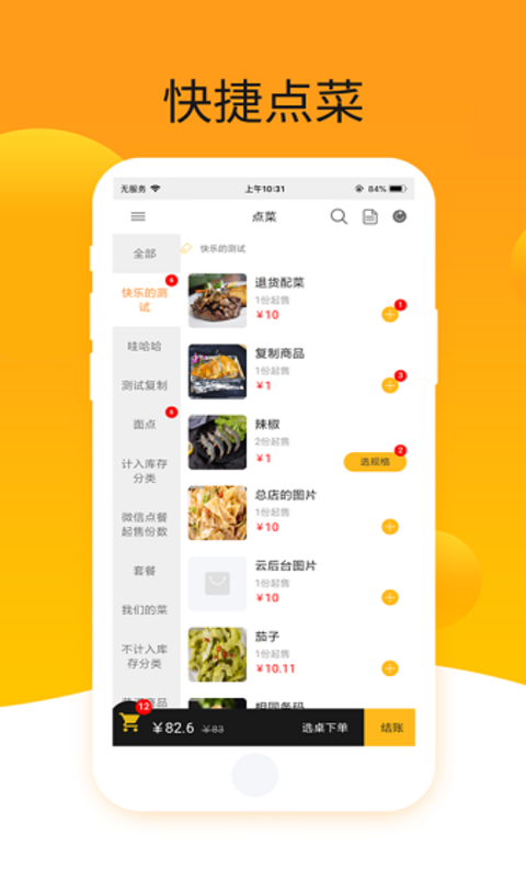3、商家可随时随地通过网页或手机端后台,对菜品分类、价格、描述、图片及沽清状态进行精细化管理与即时更新。