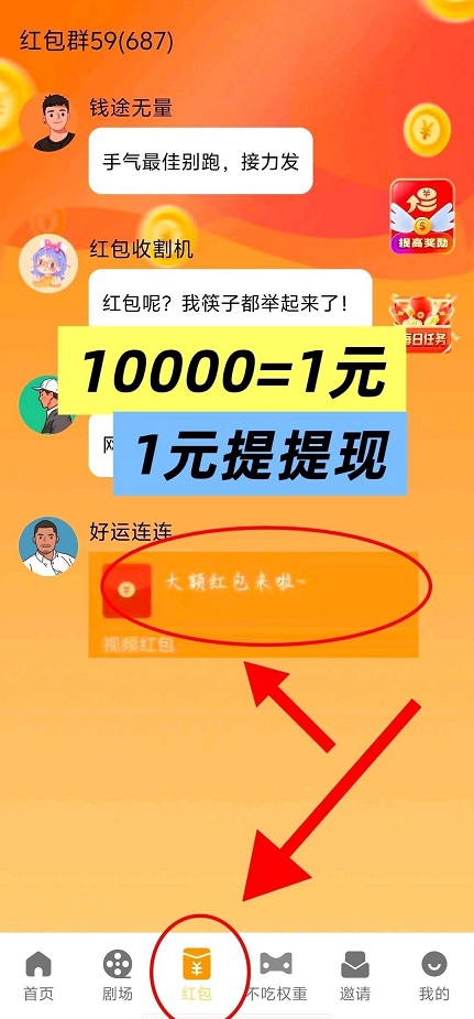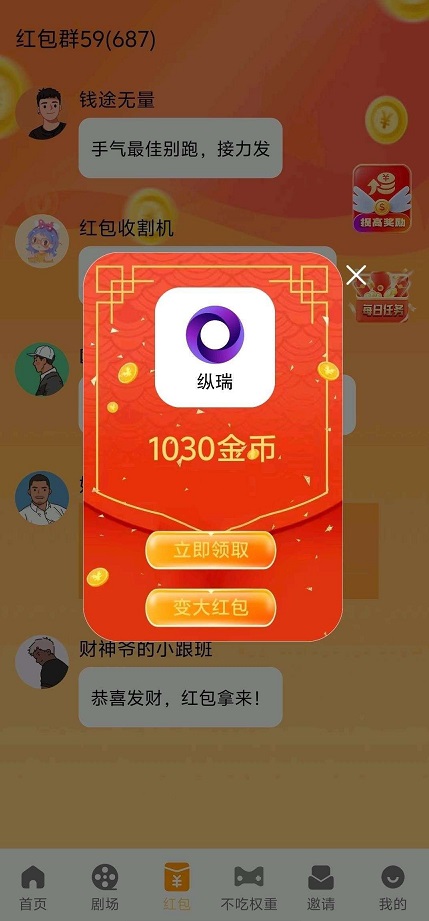 3、红包群等社交玩法,用户可通过参与群内活动、互动抢红包等方式获得额外收益。